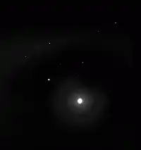 In late 2005, Spirit took advantage of a favorable energy situation to make multiple nighttime observations of both of Mars's moons Phobos and Deimos.[57] These observations included a "lunar" (or rather phobian) eclipse as Spirit watched Phobos disappear into Mars's shadow. Some of Spirit's star gazing was designed to look for a predicted meteor shower caused by Halley's Comet, and although at least four imaged streaks were suspect meteors, they could not be unambiguously differentiated from those caused by cosmic rays.[57]