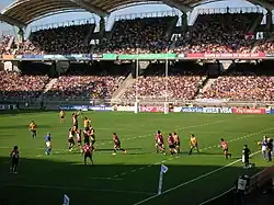 After the Meiji Restoration, various kinds of Western sports were introduced into Japan. Playing sports was adopted as a school activity and matches between universities became popular. During the 1870s, track and field events, baseball, football, rugby union, cricket and ice skating were introduced. In 1911, an Austrian gave skiing instruction to the Japanese army. In those days, Western sports were played by a few people, but through the educational system, they spread throughout the country. Western sports were initially stressed as a form of mental discipline, but Japanese have now come to enjoy them as recreational activities.[1] Professional sports, the most famous being baseball which continues even today, started in the late 1920s but persistent rumors of bribes and a general attitude that sports should be for players or as a hobby persisted. Matches between schools attracted large crowd until after World War II when airing sporting events on radio and television became common. Manga with sports-themed stories (colloquially called spokon) have also played a part in attracting readers to slightly less popular sports, such as volleyball,[2] association football,[3] basketball,[4] or American football,[5] although there are also stories focusing on more popular sports like baseball.[6]