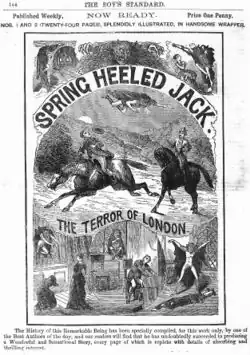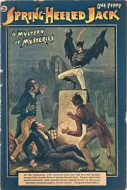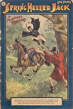 ![]() Spring-heeled Jack as depicted in the English penny dreadful Spring-Heeled Jack #2, Aldine Publishing, 1904 | |