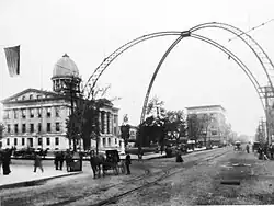 On June 14, 1957, a tornado hit Springfield, killing two people.[29] On March 12, 2006, the city was struck by two F2 tornadoes.[29] The storm system that brought the two tornadoes hit the city around 8:30pm; no one died as a result of the weather.[29] Springfield received a federal grant in February 2005 to help improve its tornado warning systems and new sirens were put in place in November 2006 after eight of the sirens failed during an April 2006 test, shortly after the tornadoes hit.[40][41][42] The cost of the new sirens totaled $983,000.[40] Although tornadoes are not uncommon in central Illinois, the March 12 tornadoes were the first to hit the actual city since the 1957 storm.[29] The 2006 tornadoes followed nearly identical paths to that of the 1957 tornado.[29]