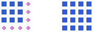 The expression for the nth square number is n2. This is also equal to the sum of the first n odd numbers as can be seen in the above pictures, where a square results from the previous one by adding an odd number of points (shown in magenta). The formula follows:For example, 52 = 25 = 1 + 3 + 5 + 7 + 9.