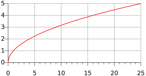 The principal square root function (usually just referred to as the "square root function") is a function that maps the set of nonnegative real numbers onto itself. In geometrical terms, the square root function maps the area of a square to its side length.