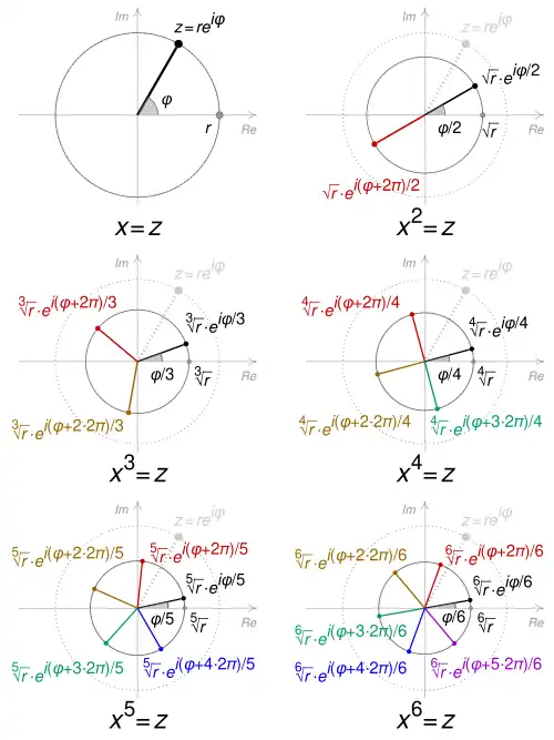 If n is an integer greater than two, a n-th root of is a number such that ; it is denoted