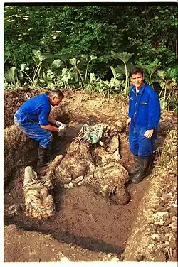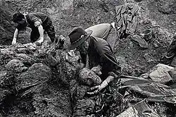 Some executions were carried out at night under arc lights, and bulldozers then pushed the bodies into mass graves.[79] According to evidence collected from Bosniaks by French policeman Jean-René Ruez, some were buried alive; he heard testimony describing Serb forces killing and torturing refugees, streets littered with corpses, people committing suicide to avoid having their noses, lips and ears chopped off, and adults being forced to watch soldiers kill their children.[79]