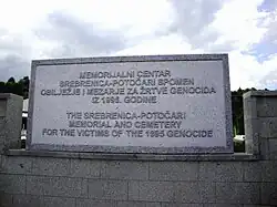 In 2004, the Appeals Chamber of the ICTY ruled the massacre of the enclave's male inhabitants constituted genocide.[23] The ruling was also upheld by the International Court of Justice in 2007.[24] The forcible transfer and abuse of between 25,000 and 30,000 Bosniak Muslim women, children and elderly, when accompanied by the massacre of the men, was found to constitute genocide.[25][26] In 2002, the government of the Netherlands resigned, citing its inability to prevent the massacre. In 2013, 2014 and 2019, the Dutch state was found liable by its supreme court and the Hague district court, of failing to prevent more than 300 deaths.[27][28][29][20] In 2013, Serbian president Tomislav Nikolić apologised for "the crime" of Srebrenica but refused to call it genocide.[30]