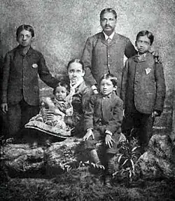 Aurobindo (seated centre next to his mother) and his family. In England, ca. 1879[10]