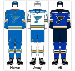 - ^ Pinkert, Chris (September 21, 2008). "Blues Unveil Third Jersey". St. Louis Blues. Retrieved October 9, 2008.