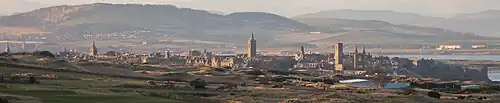 It is home to the University of St Andrews, the third oldest university in the English-speaking world and the oldest in Scotland.[6] It was ranked as the best university in the UK by the 2022 Good University Guide, which is published by The Times and The Sunday Times.[7][8] According to other rankings, it is ranked as one of the best universities in the United Kingdom.[9][10] The Martyrs Memorial, erected to the honour of Patrick Hamilton, George Wishart, and other martyrs of the Reformation epoch, stands at the west end of the Scores on a cliff overlooking the sea. The civil parish has a population of 18,421 (in 2011).[11] The town also contains numerous museums, a botanic garden and an aquarium.