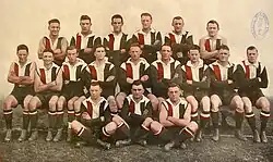 The club qualified for finals once between 1919 and 1938, although during this time period Colin Watson became the first St Kilda player to win the league's highest individual award, winning the 1925 Brownlow Medal.[26] Additionally in 1936, forward Bill Mohr kicked 101 goals, winning the leading goalkicker award and becoming the first St Kilda player to kick 100 goals or more in a season.[27]