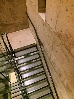 Staircases provide vertical access to connected floors in a multi-story building, and are a functional part of it. Stairwells are often used to place several staircases vertically, one above the other.[1] The entrance to elevators is often located in the stairwell. Sometimes the stairwell goes around the lift shaft, other times it is placed next to it.