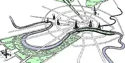 The Moscow Master Plan also included maintaining old city cores as administrative areas while building industry on city peripheries with green space and residences between the two.[14]: 68
