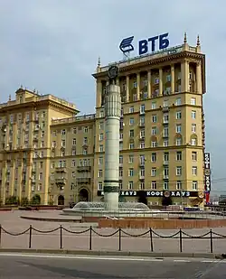 • GALS Tower (Cистема ГАЛС, 2001) by a team of Workshop 14 architects fills a gap between midrise period buildings on Tverskaya. Not intended to dominate the neighborhood, it just marks the corner of a block. Despite mixed citations from Art Nouveau and Art Deco, it blends well with its Tverskaya setting.[44]