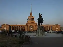 The national republics of the USSR were entitled to develop their own Stalinist styles, with more or less freedom. When local forces were not enough, Russian architects were summoned (Shchusev designed an oriental-looking theater in Tashkent, etc.). Alexander Tamanian, appointed as the chief architect of Yerevan, is largely responsible for the Armenian variety of Stalinist architecture. A prominent example is the Yerevan railway station, which was completed in 1956.