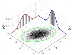The standard deviation ellipse (green) of a two-dimensional normal distribution
