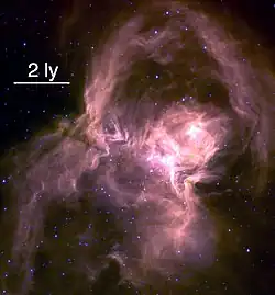 - ^ Hainich, R.; Rühling, U.; Todt, H.; Oskinova, L. M.; Liermann, A.; Gräfener, G.; Foellmi, C.; Schnurr, O.; Hamann, W.-R. (2014). "The Wolf-Rayet stars in the Large Magellanic Cloud". Astronomy & Astrophysics. 565: A27. arXiv:1401.5474. Bibcode:2014A&A...565A..27H. doi:10.1051/0004-6361/201322696. S2CID 55123954.