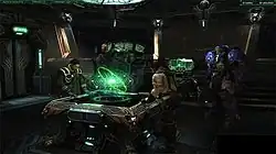 Compared to the original StarCraft, StarCraft II was designed to focus more heavily on the multiplayer aspect, with changes that included major improvements to Battle.net, a new competitive "ladder" system for ranked games, and new matchmaking mechanics that were designed to "match-up" players of equal skill level.[4] In addition, the replay function, which allows players to record and review past games, was improved. Blizzard also stated that they incorporated changes to the game that were suggested by fans.[71] StarCraft II continues its predecessor's use of pre-rendered cinematic cut scenes to advance the plot while also improving the quality of in-game cut scenes within the levels themselves, which are rendered on-the-fly using the same game engine as the graphics in the game proper. Blizzard stated that, with the new graphics engine that StarCraft II uses to render the gameplay, they "can actually create in-game cut-scenes of near-cinematic quality".[72] Improvements include advanced scenery allocation and more detailed space terrain, such as floating space platforms with planets and asteroids in the background. Small cliffs, extensions, and advertising signs were shown to have been improved and refined.[16]