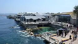 Much of the Cetacean Institute, Taylor's workplace, was created by using the real-life Monterey Bay Aquarium. A holding tank for the whales was added via special effects to the Aquarium's exterior. For close-ups of the characters as they watched the whales in the tank, the Aquarium's walls and railings were measured and replicated for a set on the Paramount parking lot. One scene takes place by a large glass through which observers view the whales—and Spock's initiation of a mind meld—underwater. Footage of the actors shot in front of them as they reacted to a brick wall in the Aquarium was combined with shots taken from their rear as they stood in front of a large blue screen at ILM to produce this scene. The footage of Spock's melding with the whales was shot weeks later in a large water tank used to train astronauts for weightlessness.[9]