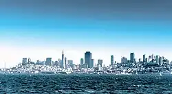The Voyage Home was the first Star Trek film to extensively film on location—only one day was spent doing so in The Search for Spock.[17] Much of the production was filmed in and around San Francisco during ten days of shooting. The production wanted to film scenes that were readily identifiable as the city.[22] The use of extensive location shooting caused logistical problems, such as a scene in which Kirk is nearly run over by an irate cab driver requiring 12–15 cars to be repositioned if the shot was incorrect, taking a half-hour to reshoot. Other scenes were filmed in the city but used sets rather than real locations, such as an Italian restaurant where Taylor and Kirk eat. In the film, the Bird-of-Prey lands cloaked in Golden Gate Park, surprising trashmen who flee the scene in their truck. The production had planned to film in the real park, where they had filmed scenes for The Wrath of Khan, but heavy rains before the day of shooting prevented it—the garbage truck would have become bogged down in the mud. Will Rogers Park in western Los Angeles was used instead.[9]