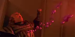 The blood that spurts out of the Klingon's wounds was created using computer generated imagery; the animators had to make sure that the blood floated in a convincing manner while still looking interesting and not too gory.[7]: 49 The effects artist looked at NASA footage of floating globules of water to inform the physics of the blood particles. Initially, the blood was to be colored green, but the filmmakers realized that McCoy had referred to Spock as green-blooded. The final color was violet, a color Meyer disliked but went ahead with as red blood would almost certainly earn the film an R rating from the MPAA.[17] The initial killing of the Klingon in the transporter room as the assassins beam aboard was the testing ground for tweaking the color of the blood and how it would move around the room. Most of the blood droplets were "blobbies", groups of spheres smoothed together by computer, creating a continuous shape. The further apart the spheres, the more the shape could stretch and even break apart. The phasers used in the scene and throughout the film were redesigned versions of earlier models and were first used in The Final Frontier. The props featured blue lights that turned on when the trigger was pressed, so Visual Concepts Engineering's artists knew when to add the phaser beam effects.[5]: 50 The ILM team matched the phaser blasts with hand-painted effects in Photoshop. ILM did minor touchup to the scenes as required, adding clothing tears where the phaser blasts hit the actors and adding the hazy Klingon atmosphere to the computer-rendered objects.[5]: 50–1 These zero gravity scenes were the most expensive sequences to complete.[13]