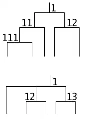 A. A. Tokovinin's Multiple Star Catalogue uses a system in which each subsystem in a mobile diagram is encoded by a sequence of digits. In the mobile diagram (d) above, for example, the widest system would be given the number 1, while the subsystem containing its primary component would be numbered 11 and the subsystem containing its secondary component would be numbered 12. Subsystems which would appear below this in the mobile diagram will be given numbers with three, four, or more digits. When describing a non-hierarchical system by this method, the same subsystem number will be used more than once; for example, a system with three visual components, A, B, and C, no two of which can be grouped into a subsystem, would have two subsystems numbered 1 denoting the two binaries AB and AC. In this case, if B and C were subsequently resolved into binaries, they would be given the subsystem numbers 12 and 13.[3]