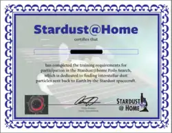 - ^ "Stardust@Home - Stardust Search Finding Stardust". foils.ssl.berkeley.edu. Archived from the original on 24 October 2021. Retrieved 27 August 2021.