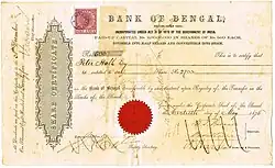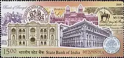 The bank descends from the Bank of Calcutta, founded in 1806 via the Imperial Bank of India, making it the oldest commercial bank in the Indian subcontinent. The Bank of Madras merged into the other two presidency banks in British India, the Bank of Calcutta and the Bank of Bombay, to form the Imperial Bank of India, which in turn became the State Bank of India on 1 July 1955.[22] Over the course of its 200-year history, the bank has been formed from the mergers and acquisitions of more than twenty banks.[23][24] The Government of India took control of the Imperial Bank of India in 1955, with Reserve Bank of India (India's central bank) taking a 60% stake, renaming it State Bank of India.