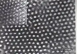 SBS block copolymer seen with transmission electron microscopy (TEM)