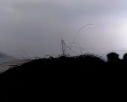 Small hairs standing up after a thunderstorm, as a result of the left-over weak static electricity