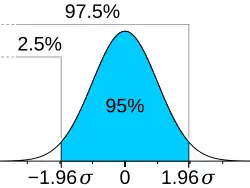 - ^ "Conclusions about statistical significance are possible with the help of the confidence interval. If the confidence interval does not include the value of zero effect, it can be assumed that there is a statistically significant result." Prel, Jean-Baptist du; Hommel, Gerhard; Röhrig, Bernd; Blettner, Maria (2009). "Confidence Interval or P-Value?". Deutsches Ärzteblatt Online. 106 (19): 335–9. doi:10.3238/arztebl.2009.0335. PMC 2689604. PMID 19547734.