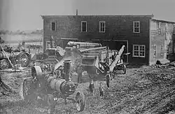 In 1910, the street village linear settlement, or Strassendorf (Straßendorf in German) for the community ended.[8] Prior to this time, the settlers of Steinbach lived in long narrow strips, called Wirtschaft (plural: Wirtschaften), along the Steinbach Creek. Following the lead of the neighbouring Mennonite village of Blumenort, who had abandoned their Strassendorf system a year earlier, the village of Steinbach was surveyed and land was redistributed with individual titles to open-field properties. Those who were given inferior land were financially compensated by the others. Although a communal pasture for cattle was maintained for some decades after this, the end of the linear settlement meant the end of the traditional communal lifestyle of the Mennonites in this area, but also opened the area up to greater entrepreneurial enterprise.[11] The mayor, or schulz, of Steinbach at this time was Johan G. Barkman, Steinbach's longest serving schulz, who held that position for twenty-five years, including overseeing such significant events as the end of the Strassendorf.[15] In 1911, the Kleine Gemeinde church, who had met in the village school up until this point, constructed a building on the south end of the village.[9]