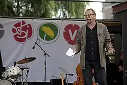 Skarsgård has voiced support for Swedish tax policies, and for a high income tax rate for high earners.[1] He is avowedly anti-nationalist.[1] Skarsgård is a supporter of Palestine, protesting the Israeli invasion of the Gaza Strip and auctioning off a signed Mamma Mia! record for a fundraiser for humanitarian aid.[29]