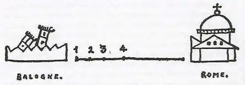 In Stendhal's 1822 De l'amour he describes or compares the "birth of love", in which the love object is 'crystallized' in the mind, as being a process similar or analogous to a trip to Rome. In the analogy, the city of Bologna represents indifference and Rome represents perfect love: