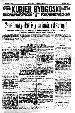 On 29 August 1931, Polish politician Tadeusz Hołówko was assassinated by two members of the OUN Vasyl Bilas and Dmytro Danylyshyn.[29] Both were sentenced to death. Bandera-led OUN propaganda made them martyrs and ordered Ukrainian priests in Lviv and elsewhere to ring bells on the day of their execution.[29]