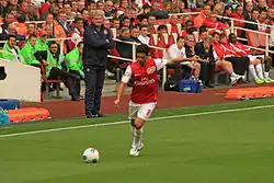 Bruce was also known for his unusually high goalscoring rate for a centre-back, resulting from a combination of his ability to powerfully head the ball and his effectiveness in taking penalty kicks.[84] Although lacking poise and grace,[83] and often criticised for his lack of pace,[83][85] his bravery and willingness to take knocks from opposition players made him the "heart" of the defence during his time with Manchester United.[86] He was well known for continuing to play even when injured,[83][87] including returning to the United team at short notice in 1992 even though he was awaiting an operation on a hernia.[56] His indomitable spirit and motivational abilities were deemed vital to the United team,[83] and Alex Ferguson has commented on his "determination and heart".[88]