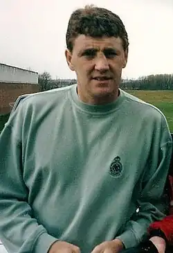 Following the lifting of the five-year ban on English clubs from European competitions, which had been imposed after the Heysel Stadium disaster, United became England's first entrants into the European Cup Winners' Cup in the 1990–91 season.[52] Bruce played regularly, and scored three goals, in the team's progress to the final against FC Barcelona.[53] He came close to scoring the first goal, only for Mark Hughes to deflect the ball over the line and claim the goal,[54] and United went on to win the game 2–1. This was a particularly high-scoring season for Bruce, who found the net 13 times in the First Division and 19 times in total in all competitions.[53] He also played again at Wembley, in the League Cup final, in which United were defeated by Sheffield Wednesday of the Second Division.[55]