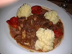 - Beef bourguignon, a French dish of beef stewed in red burgundy wine