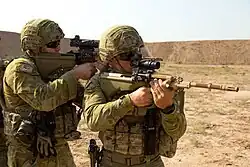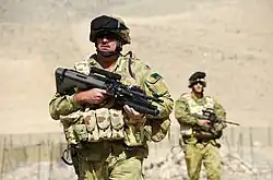 The Australian Defence Force (ADF) adopted a modified Steyr AUG designated as the F88 Austeyr.[38] From the late 1980s, the F88 became the ADF's standard issued rifle replacing the L1A1 SLR and M16A1 in the Australian Army.[39] From the mid-2010s, the Enhanced F88 (EF88) Austeyr replaced the F88.[40]