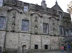 The oldest part of the Inner Close is the King's Old Building, located on the western side and completed around 1497.[84] It was begun as a new residential range by James IV, and originally comprised an L-shaped building. The principal rooms were on the first floor, over cellars, and included two chambers with wide open views to the west, although the interiors have been much altered.[85] The projecting stair tower has an octagonal upper section, which was copied for a second, later stair tower on the same building.[86]