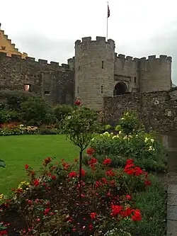 Under the early Stewart kings Robert II (reigned 1371–1390) and Robert III (reigned 1390–1406), the earliest surviving parts of the castle were built. Robert Stewart, Earl of Menteith, Regent of Scotland as brother of Robert III, undertook works on the north and south gates. The present north gate is built on these foundations of the 1380s, the earliest surviving masonry in the castle.[24] In 1424, Stirling Castle was part of the jointure (marriage settlement) given to James I's wife Joan Beaufort, establishing a tradition which later monarchs continued.[25]
