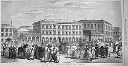 The beginnings of lending were in Italy in the late Middle Ages. In the 14th century, Venetian lenders would carry slates with information on the various issues for sale and meet with clients, much like a broker does today.[4] Venetian merchants introduced the principle of exchanging debts between moneylenders; a lender looking to unload a high-risk, high-interest loan might exchange it for a different loan with another lender. These lenders also bought government debt issues.[5] As the natural evolution of their business continued, the lenders began to sell debt issues to the first individual investors. The Venetians were the leaders in the field and the first to start trading securities from other governments, yet did not embark on private trade with India. Nor did the Italians connect on land with the Chinese Silk Road. Along the potential overland trade route, Holy Roman Emperor Frederick II repulsed advances by Mongol Batu Khan (Golden Horde) in 1241.[6] There is little consensus among scholars as to when corporate stock was first traded. Some view the key event as the Dutch East India Company's founding in 1602,[7] while others point to much earlier developments (Bruges, Antwerp in 1531 and in Lyon in 1548). The first book in history of securities exchange, the Confusion of Confusions, was written by the Dutch-Jewish trader Joseph de la Vega and the Amsterdam Stock Exchange is often considered the oldest "modern" securities market in the world.[8] On the other hand, economist Ulrike Malmendier of the University of California at Berkeley argues that a share market existed as far back as ancient Rome, that derives from Etruscan "Argentari".[9] In the Roman Republic, which existed for centuries before the Empire was founded, there were societates publicanorum, organizations of contractors or leaseholders who performed temple-building and other services for the government.[10] One such service was the feeding of geese on the Capitoline Hill as a reward to the birds after their honking warned of a Gallic invasion in 390 B.C. Participants in such organizations had partes or shares, a concept mentioned various times by the statesman and orator Cicero. In one speech, Cicero mentions "shares that had a very high price at the time". Such evidence, in Malmendier's view, suggests the instruments were tradable, with fluctuating values based on an organization's success. The societas declined into obscurity in the time of the emperors, as most of their services were taken over by direct agents of the state.[10]