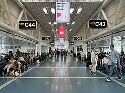 Since 2022, Terminal 5 has been connected to Terminal 4 via an airside walkway, allowing them to operate as a single terminal.[35] Terminal 5 now manages arrivals, customs, and baggage reclaim for Terminal 4. A new security control facility equipped with CT scanners opened in early summer 2023.[40] Ongoing expansion efforts include the construction of an expanded airside concourse and new duty-free store, which has been opening gradually since 2023 and is expected to be completed by the end of 2024, featuring approximately 50 new retailers, restaurants, and services.