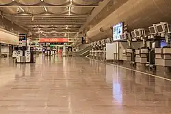 In the spring of 2020, most flights were cancelled due to the COVID-19 pandemic.[12] SAS decided to fly only four domestic departures and four domestic arrivals from Arlanda, plus some international flights, after 6 April 2020[13] while Norwegian cancelled all flights from Arlanda except to Oslo.[14] Terminal 2, 3 and 4 closed and terminal 5 handled all passengers during this period (March 2020 – October 2021)[15][16][17] The passenger figures were 97.7% lower in April 2020 than in April 2019.[16][12] The figured picked up later, but in early 2021 were still more than 80% less per month than 2019.[18]