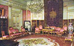 During the reign of King Oscar I, there was a renewed interest for older styles and when the Vita Havet (the White Sea Ballroom) was created from the designs of Per Axel Nyström in 1844–1850, a compromise between old and new was made. Fredrik Wilhelm Scholander was the royal curator of King Charles XV and shared his taste in interior design, this resulted in rooms like the Victoriasalongen (the Victoria Drawing room) in a lush, revived Rococo style.[39]