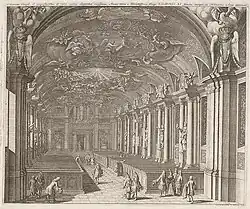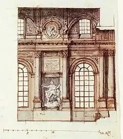 Some embellishments in Tessin's plans were never made. For example, he wanted to place an equestrian statue of King Charles XI in the inner courtyard in the French fashion at that time, but King Charles XII disliked that and rejected the idea since it would "totally obscure the beautiful prospect".[22] Neither did Tessin's suggestion to embellish the roof balustrade with sculptures. Tessin's vision for this can be seen on an illustration of the palace made by Jean Eric Rehn about 1770.[23]
