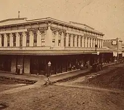 As the head of navigation on the San Joaquin River, the city grew rapidly as a miners' supply point during the Gold Rush. Weber built the first permanent residence in the San Joaquin Valley on a piece of land now known as Weber Point.[18] During the Gold Rush, the location of what is now Stockton developed as a river port, the hub of roads to the gold settlements in the San Joaquin Valley and northern terminus of the Stockton - Los Angeles Road. During its early years, Stockton was known by several names, including "Weberville," "Fat City," "Mudville" and "California's Sunrise Seaport."[2] In 1849 Weber laid out a town, which he named "Tuleburg," but he soon decided on "Stockton" in honor of Commodore Robert F. Stockton. Stockton was the first community in California to have a name that was neither Spanish nor Native American in origin.[1]
