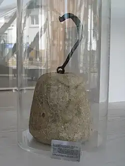 The name "stone" derives from the historical use of stones for weights, a practice that dates back into antiquity. The Biblical law against the carrying of "diverse weights, a large and a small"[7] is more literally translated as "you shall not carry a stone and a stone (אבן ואבן), a large and a small". There was no standardised "stone" in the ancient Jewish world,[8] but in Roman times stone weights were crafted to multiples of the Roman pound.[9] Such weights varied in quality: the Yale Medical Library holds 10- and 50-pound examples of polished serpentine,[10] while a 40-pound example at the Eschborn Museum is made of sandstone.[11]