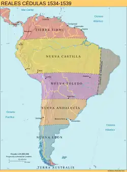 In the 1530s Charles V divided South America and whatever was to be south of it into a series of grants to different conquistadors. The strait of Magellan and the area south of it went to Pedro Sánchez de la Hoz.[19][b]