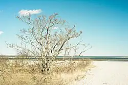 Long Beach – Approximately 1.5 miles (2.4 km) long, the eastern end of the beach is open to the public and has parking and lifeguards. The central part of the beach is a nature preserve whose land is set aside for wildlife, particularly nesting raptors, such as American kestrels and ospreys. The western end of the beach was once the site of about 40 cottages, which were abandoned because of the town's discontinuation of the lease to the land. The cottages were demolished in fall 2010.