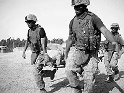 Stretchers are primarily used in acute out-of-hospital care situations by emergency medical services (EMS), military, and search and rescue personnel. In medical forensics, the right arm of a corpse is left hanging off the stretcher to let paramedics know it is a deceased person. They are also used to restrain prisoners during executions via lethal injection.[2]