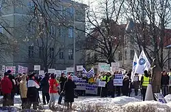 A teachers' strike in Tartu, Estonia in front of the Ministry of Education building, March 2012
